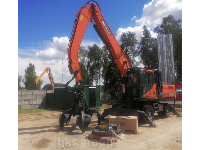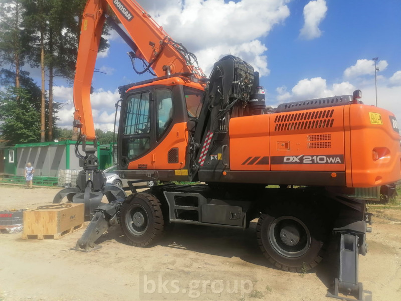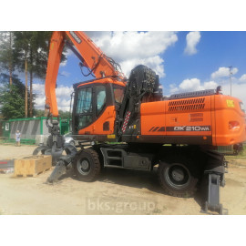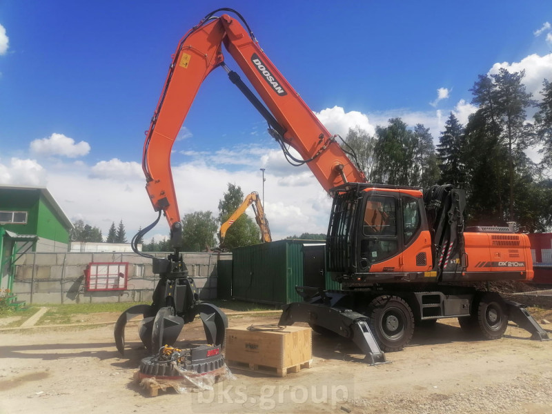 Колесный перегружатель Doosan Dx210wa с грейферным захватом и магнитной шайбой, с системой автоматической централизованной смазки Linkoln и предпусковым подогревателем